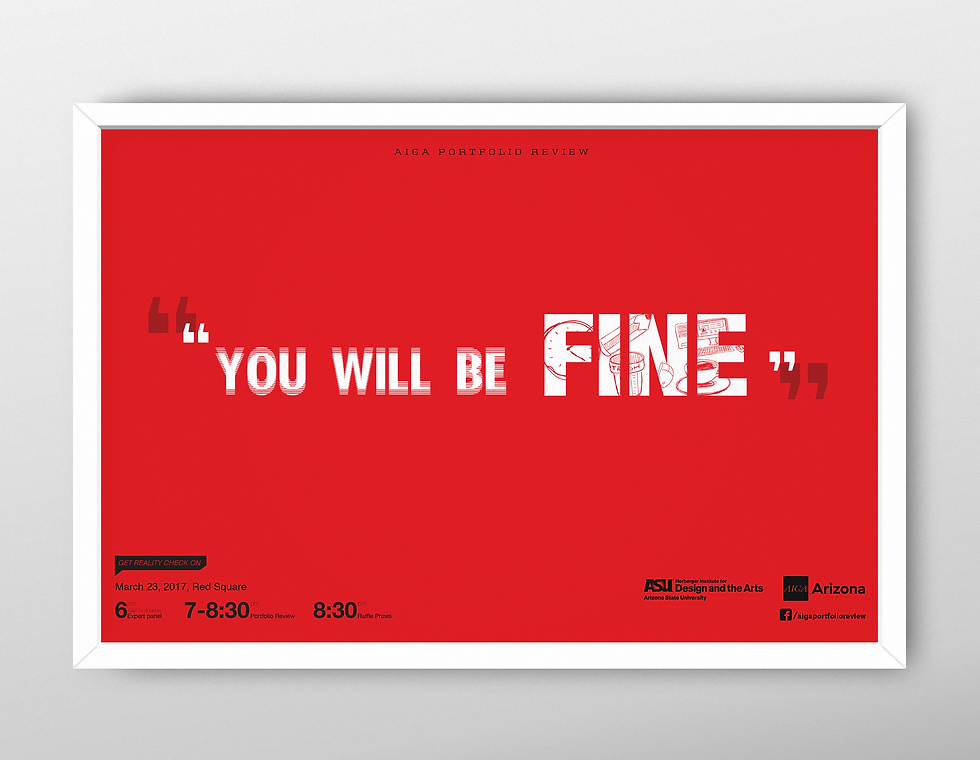 The Phoenix Portfolio Review is open to all graphic design students of the state of Arizona. The main audience for the poster are all those students. Consider that most students are scared of showing their work, so I want to have a call to action that reflects that fear or how they might over come it.